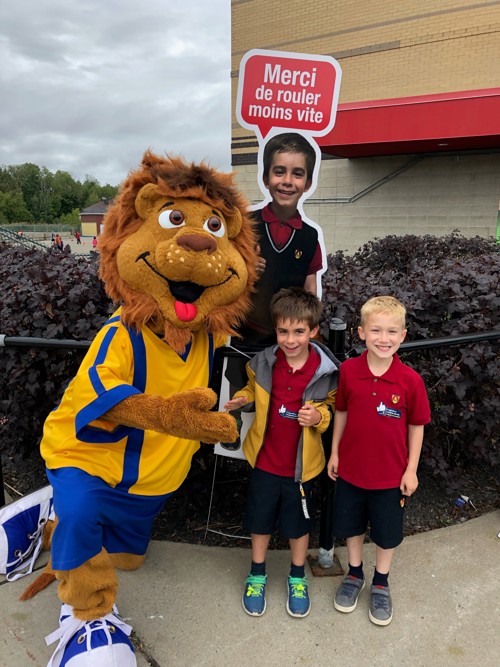 - Panneau géant arborant le slogan « À l’approche de l’Académie Saint-Louis, on dit oui à la courtoisie! »;
