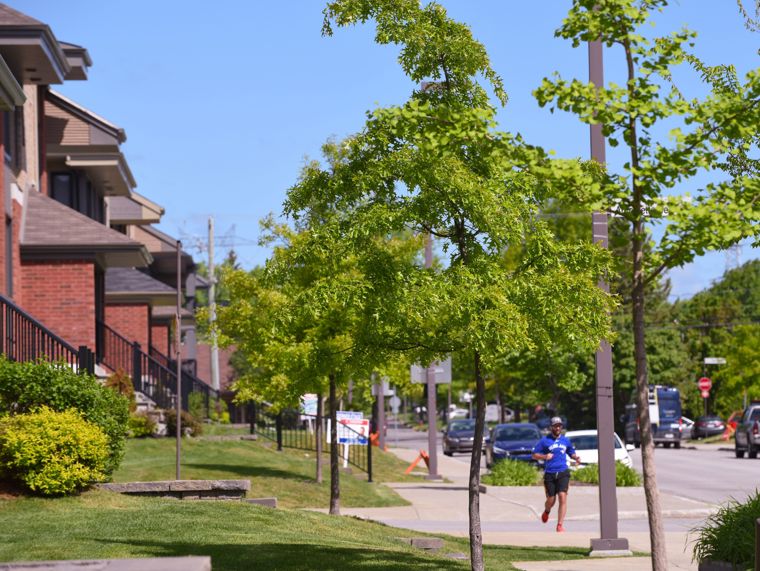 Les rues bordées d’arbres renforcent le désir d’y circuler à pied ou à vélo tout en offrant un environnement attrayant et ombragé pour bouger.