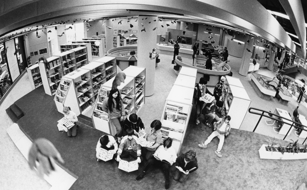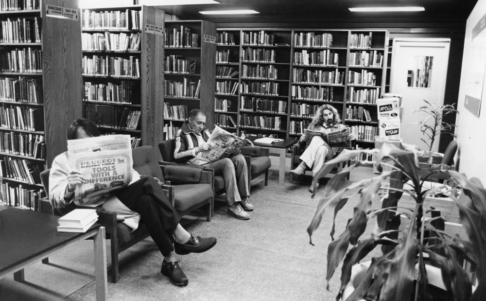La centrale de la Bibliothèque de Québec en 1948 dans le temple Wesley. Photo : Office provincial de publicité du Québec, collection de L'ICQ.