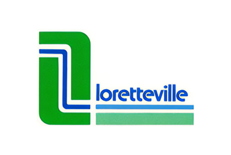 On voit bien les deux L verts, dont l’un est inversé, dans ce logo datant de 1987, mais pourquoi le trait bleu entre eux? Il s’agit de la rivière Saint-Charles et de la chute Kabir Kouba qui coulent à Loretteville. Avouez que le mouvement de la chute est bien dessiné!