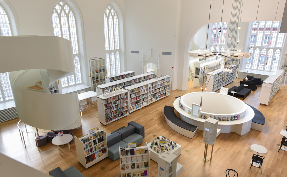 Reconvertis en bibliothèques, les bâtiments religieux conservent leur vocation première, celle de lieux de rassemblements et d’échanges.